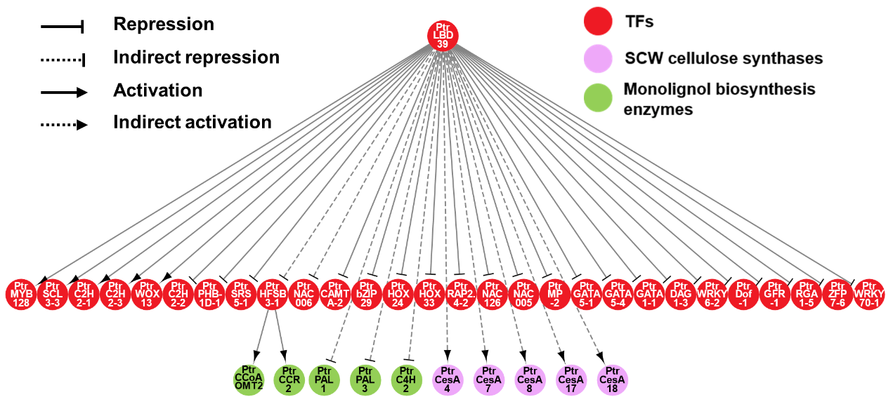 图2 PtrLBD39转录因子介导的杨树应拉木形成的转录调控网络